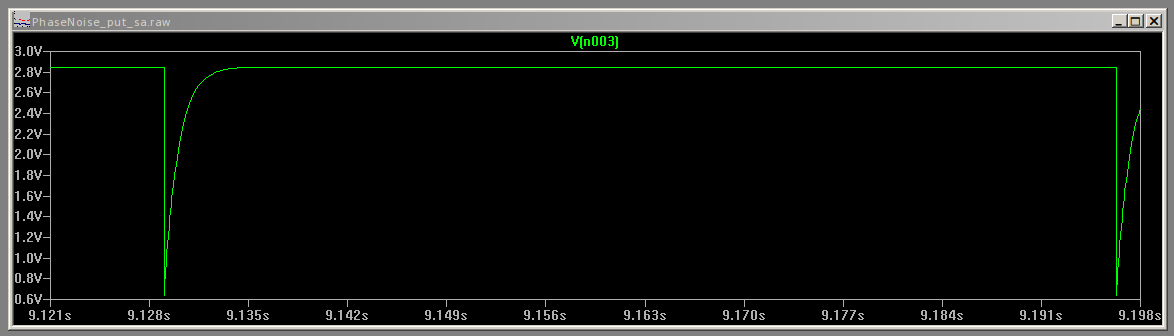 Compared to the standard PUT oscillator C1 will charge up to close to Vt almost as quickly but it will then spend a long time just below Vt. Graphics show the voltage across C1 for the self adjusting PUT oscillator and the standard version. For the former the simulation gives a gradient of around 6 mV per second - if it was true and if one could measure time to 1 μs then sensitivity would be in pico-Volts, down amongst thermal noise levels.