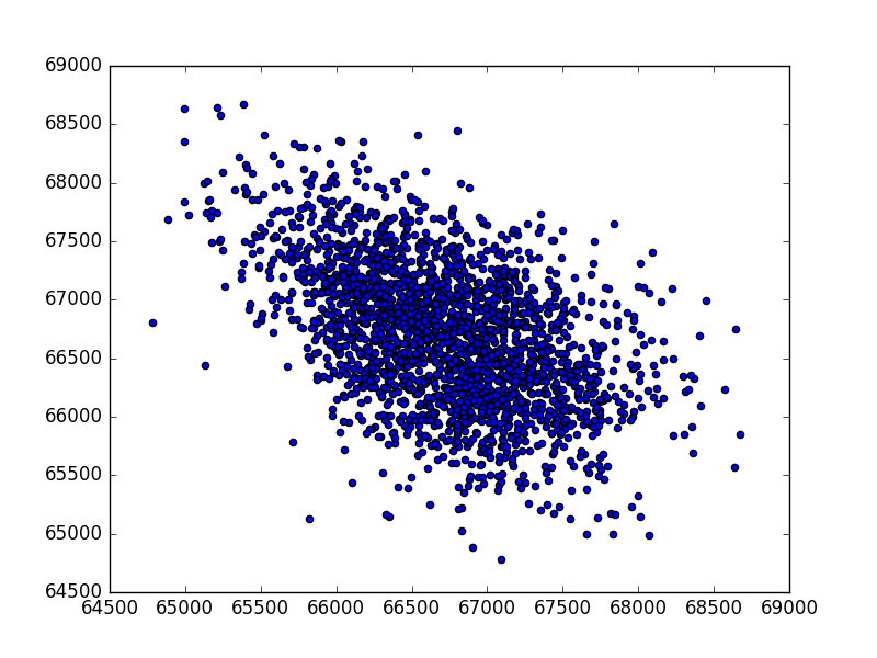 [29] says that the scatter plot of the form shown in the second graphic of the previous set is indicative of white phase noise.