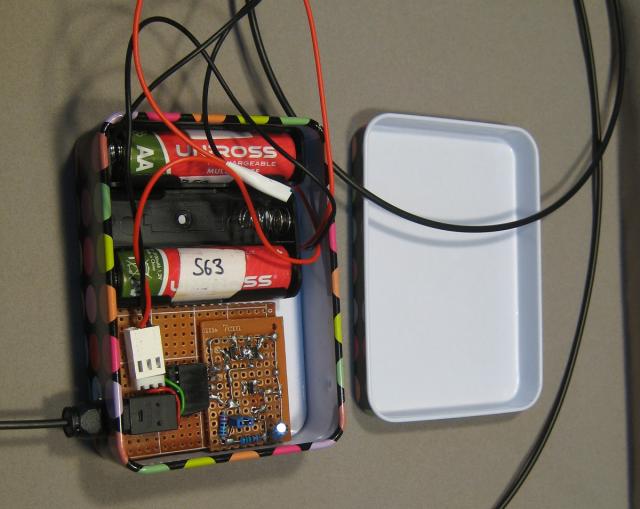 To get rid of the interference I built the PUT and self adjusting PUT oscillators in a tin box - also in the box were 3 AA NiMh batteries. Communication with the micro-controller was via an optical fibre cable. I used the TORX 178B and TOTX 179P receiver and transmitter and two metres of Toslink cable.