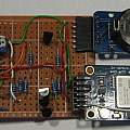 The processor is running from 5V all the peripherals use 3.3V, as a result the two pieces of protoboard contain eight single FET level shifters [5]. In addition there is an AMS1117 voltage regulator providing 3.3V.