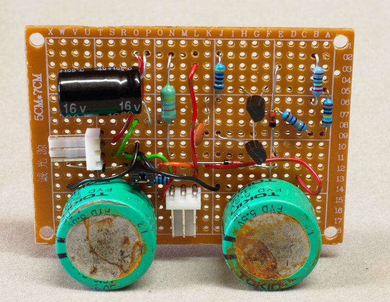 I was once told in a Physics class "You will never see a 1 Farad capacitor, it would fill this room!". So I had to buy one, if only to point at and say "I was once told...". I found 1 Farad 5.5 V Tokin capacitors on eBay - five for just over a pound. The idea is to charge the caps from a solar cell and run the sensor on the stored power.